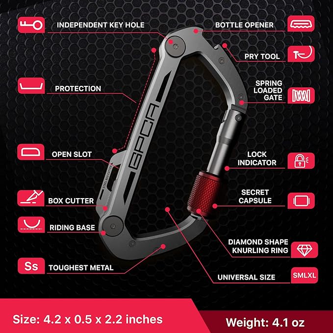 - PREMIUM GRADE MATERIALS: GPCA Carabiner Keychain Clip is known for its strength and durability. It serves as a reliable travel accessory, perfect for outdoor adventures. With a high load-bearing capacity, our carabiner keychain clip is not just for keys. It can handle heavier items like tools, flashlights, or even small bags, making it a versatile tool for any situation.