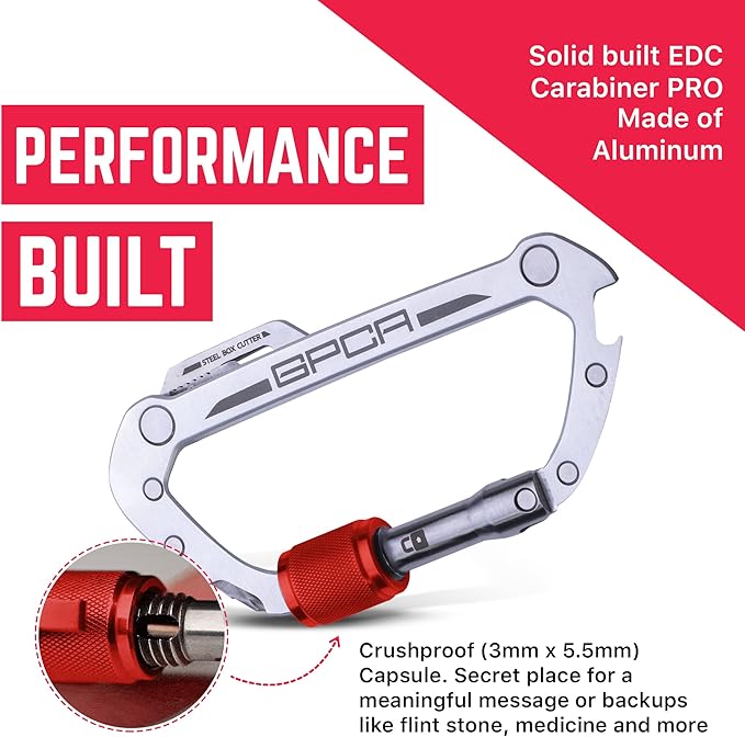 - PREMIUM GRADE MATERIALS: GPCA Carabiner Keychain Clip is known for its strength and durability. It serves as a reliable travel accessory, perfect for outdoor adventures. With a high load-bearing capacity, our carabiner keychain clip is not just for keys. It can handle heavier items like tools, flashlights, or even small bags, making it a versatile tool for any situation.
