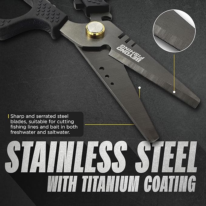 Beyond Fishing 6.5" Pro Fishing Shears Dual Serrated Blades, Fishing Braided Line Scissors with Titanium Coating, Non-Slip Grip & Multifunction Tool, Includes Hard Molded Locking Sheath