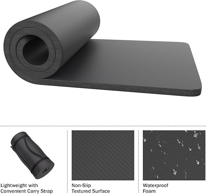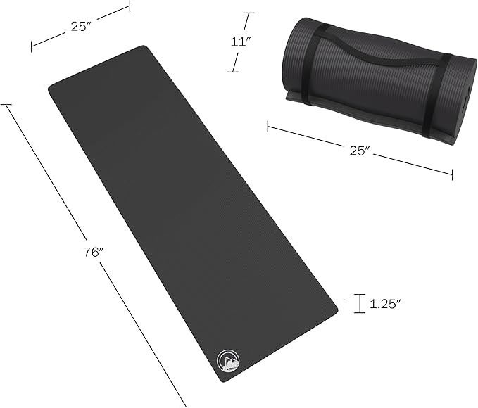 - PRODUCT DETAILS – Material: NBR Foam. Dimensions: (L) 76” x (W) 25” x (H) x 1.25”. Rolled Dimensions: (L) 25” x (W) 11” x (H) 11”. Weight: 5lbs. Includes Carrying Straps. Set of 2. May Ship Separately. Color: Black.