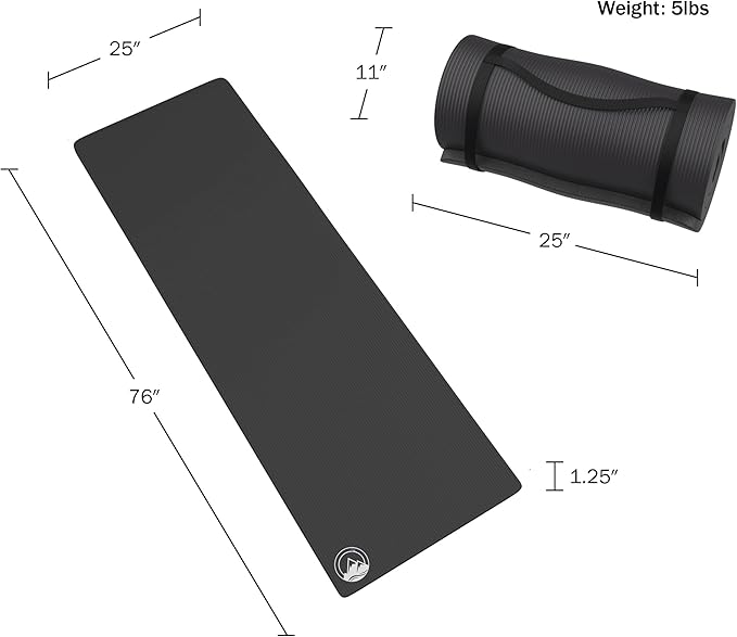 - PRODUCT DETAILS – Material: NBR Foam. Dimensions: (L) 76” x (W) 25” x (H) x 1.25”. Rolled Dimensions: (L) 25” x (W) 11” x (H) 11”. Weight: 5lbs. Includes Carrying Straps. Set of 2. May Ship Separately. Color: Black.