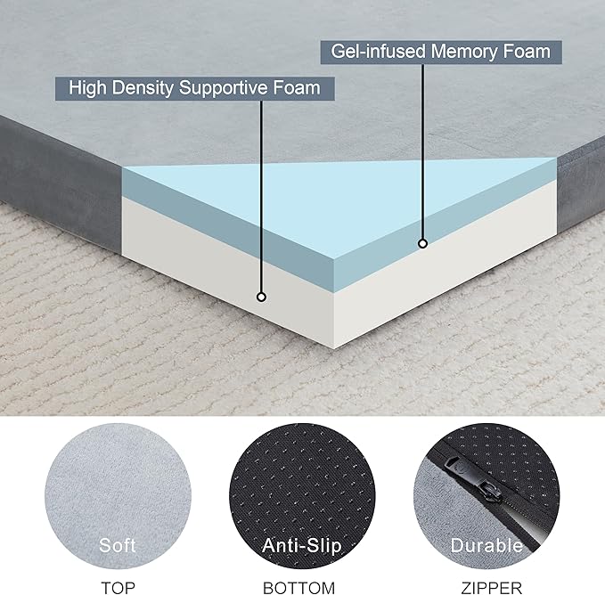 - WATERPROOF UPGRADED COVER: Super soft velboa cover with TPU coating is water-resistant. Anti-Slip bottom to keep the floor bed stays in place, with eight Velcro connectors in the corner make it easy to create your own custom sleeping mat. The high-quality zipper is smooth and durable.