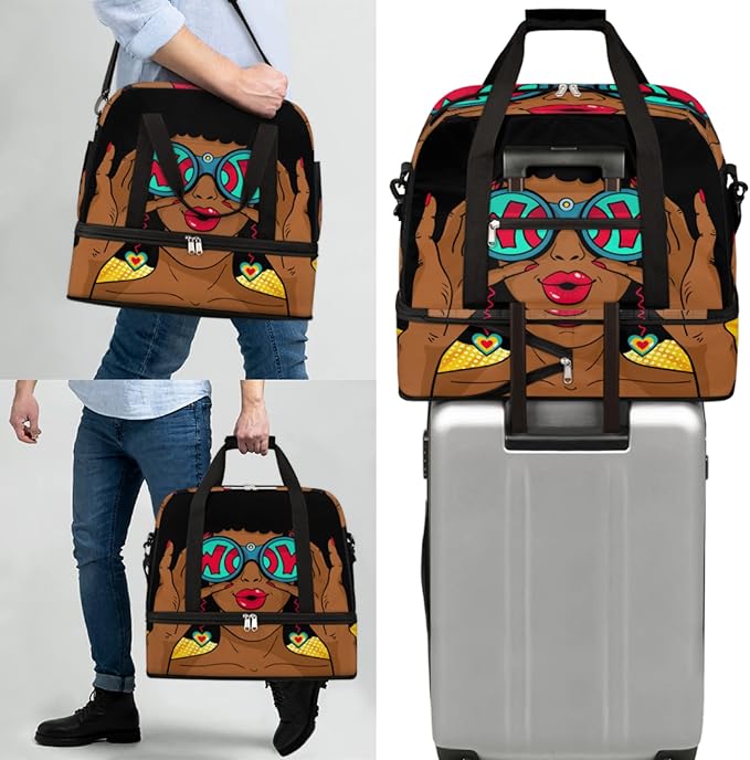 TropicalLife African Women's Wow Travel Duffle Bag, Sports Gym Bag with Shoes Compartment, Waterproof, Medium, Red