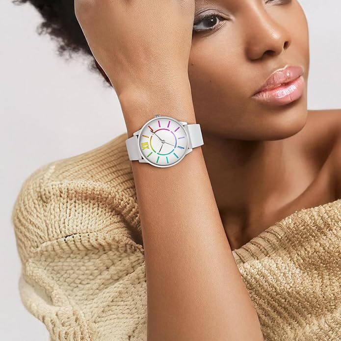 • Easy-to-Read: The white dial with rainbow index ensures that you can quickly and effortlessly read the time at a glance, making this watch both fashionable and functional.