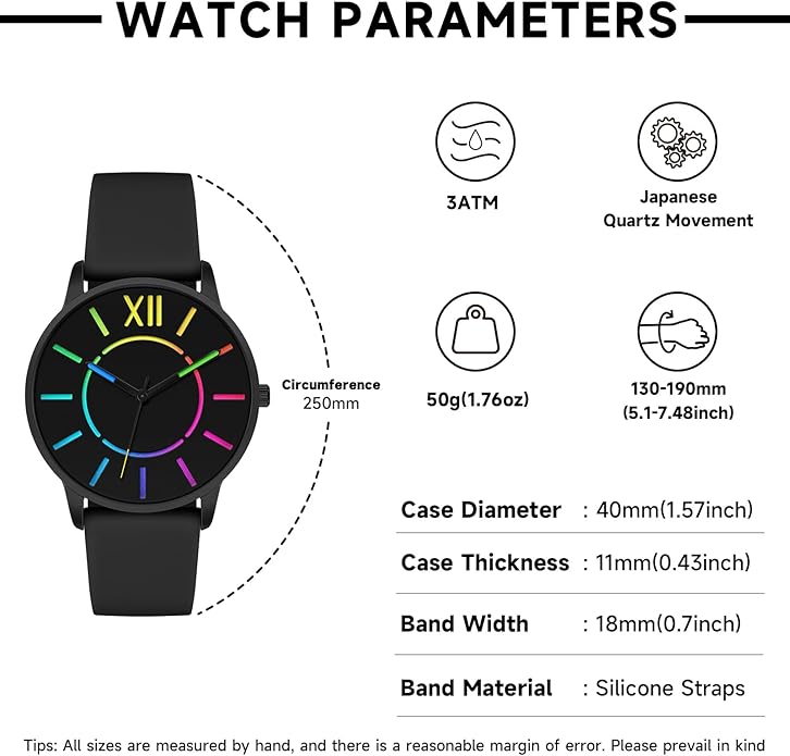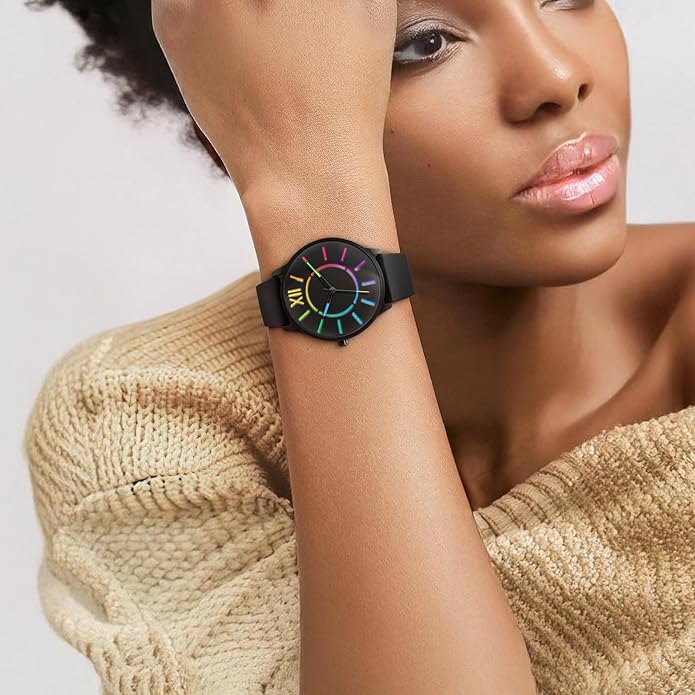 • Easy-to-Read: The black dial with rainbow index ensures that you can quickly and effortlessly read the time at a glance, making this watch both fashionable and functional.