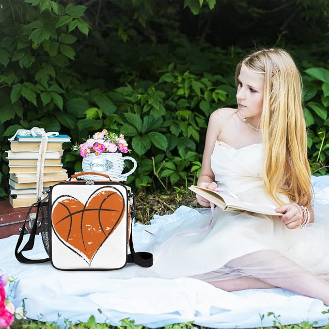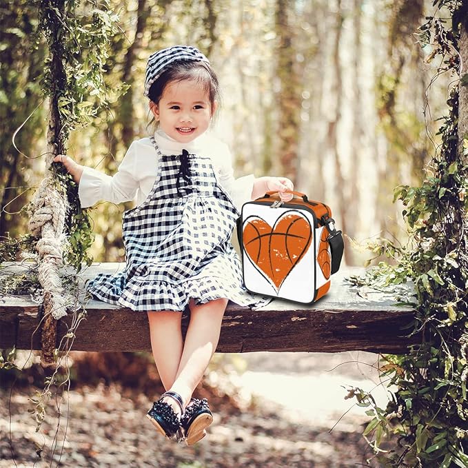 cfpolar Basketball Lunch Box for Boys Girls, Basketball Printed Insulated Lunch Bags for Kids Reusable Mini Cooler Lunch Tote Lunchbox Thermal Meal Tote Kit with Shoulder Strap for Work School Picnic