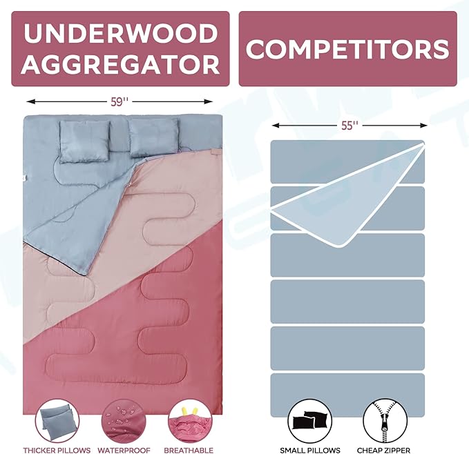 - BETTER CUSTOMER SERVICE: The Underwood Aggregator sleeping bag for men undergoes rigid inspection before its departure from the factory. Should you have any problems with the sleeping bag for 2 person, please don't hesitate to contact our customer support team. We are ready to help and happy to hear from you. Your satisfaction, our responsibility