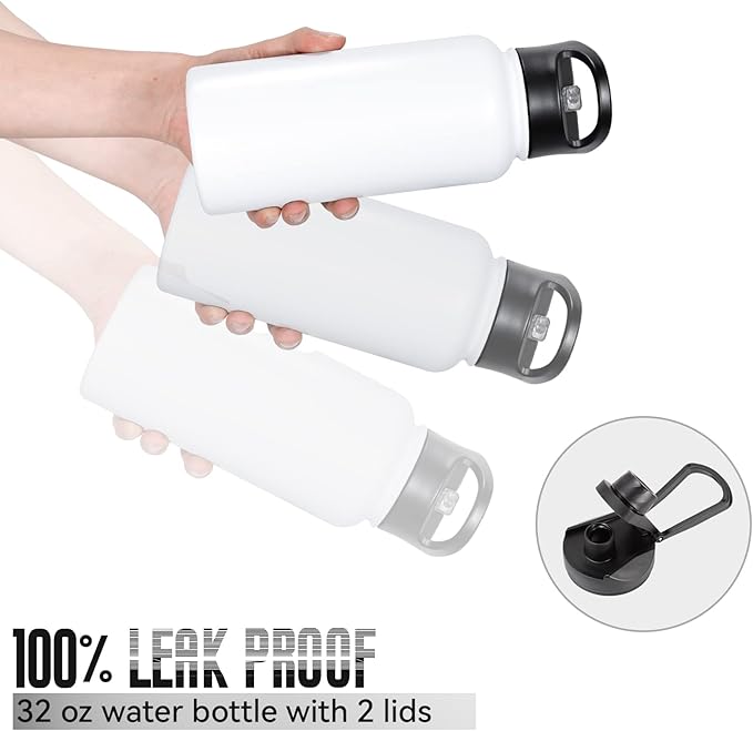 - 2 Lids: The stainless steel water bottles come with 2 leak proof handle lids (straw lid and wide mouth lid), safe and easy to carry
