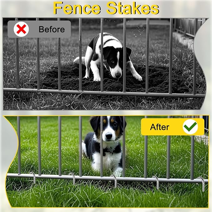 - Wide Application: Heavy duty yard stakes fence stakes for ground gardening. Tie down stakes for outdoor decorations. Can use stakes heavy duty to hold down the trampolines, swing sets, slides, dog fences, tent, ground anchor