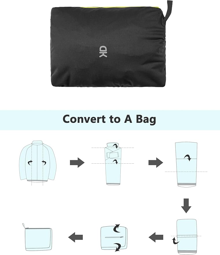 - Ultralight & Packable – Jacket is super lightweight. Can be folded and tucked into its back pocket and convert to a small bag. Folded jacket is of small volume. You can even put it in your pocket.