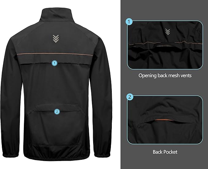 Little Donkey Andy Men's Cycling Jacket, Waterproof Lightweight Windbreaker, Packable