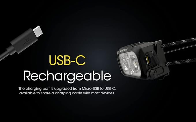 - USB-C RECHARGEABLE - The headlamp is great for travel and daily use. It can be easily be charged on-the-go using a USB-c charging cable connected to any USB power source or use the Adapter for other power source.