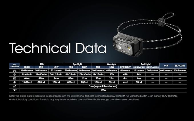 - BRIGHT LIGHTWEIGHT HEADLAMP- the NU25 headlamp is capable of a 400 lumen max, Instead of traditional headband, it comes with a pair of paracord, which make NU25 even more lightweight, perfect for backpacking, biking, jogging and trekking.