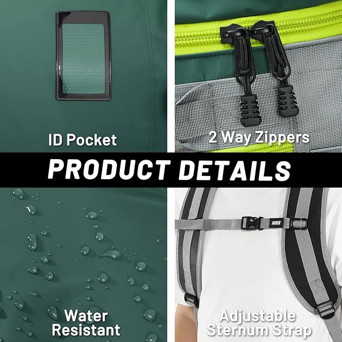 - Functional Construction ---- Daisy chain loops and "D" rings on strap for extra attachments; Innovative compression strap system helps compact large loads; Smooth "MIER" brand zipper and strong buckles, box-stitched on every stress points, being more durable and tough, make MIER bag ready for a lifetime of adventures