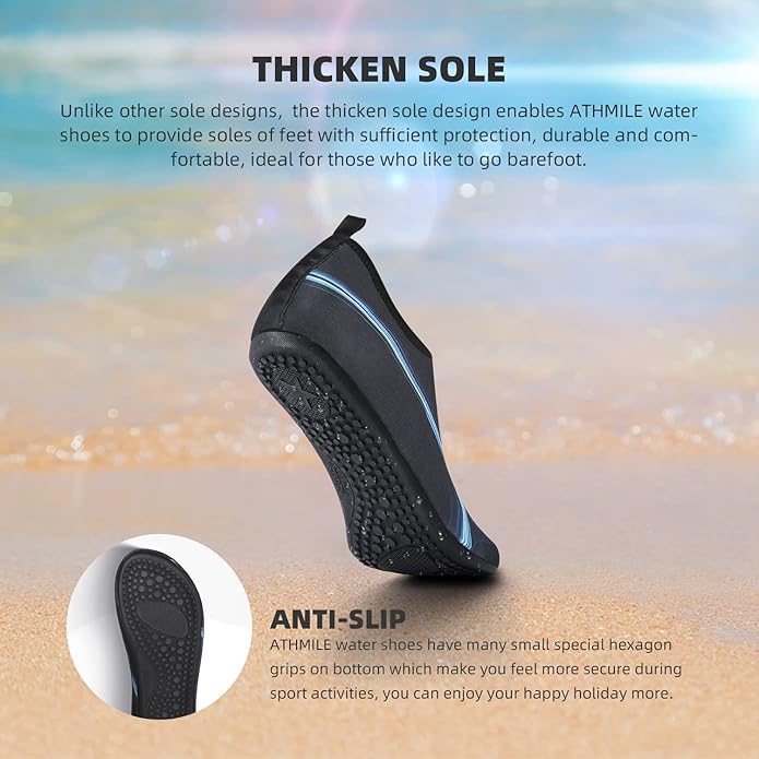 - QUICK-DRY&ANTI-SLIP: Barefoot shoes upper is made of professional diving fabric, which is breathable and quick-dry.The soles have similar tire texture design, good anti-slip performance, and can firmly grasp the ground.
