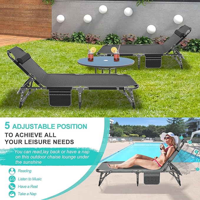 - Versatile Functionality: Can be used as a lounge cot for sunbathing; suitable for indoor and outdoor activities like camping, hiking, or fishing