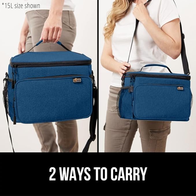 GORILLA GRIP Reusable Insulated Lunch Box Bag, Large Capacity, Leakproof Soft Cooler Bags, Mesh Pockets and Adjustable Strap, Food Tote for Work Camping School, Keep Drinks Cold, 8L, 10x9, Navy Blue