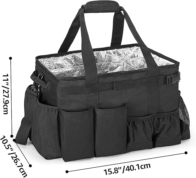 - 3 Carrying Ways: The bbq essentials storage bag can be transported by an adjustable shoulder strap, 2 padded long handles or 2 side short handles; when not in use, you can fold it up for storage and for the next use, without taking up a lot of space