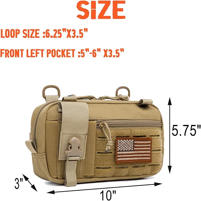 Molle Admin Pouch with Laser Cutting Loop,Car EDC EMT Molle Pouches, Large Capacity Tactical Pouch, EDC Pouch Organizer Include US Flag