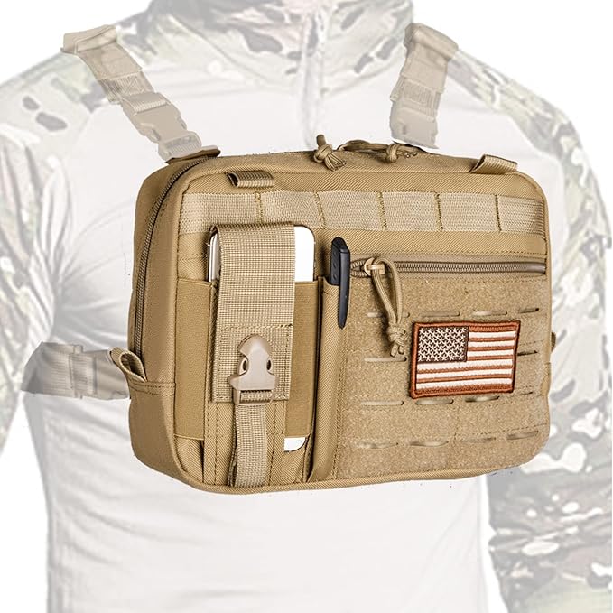 - UPGRADED PERFECT DESIGN :The front side of tactical admin pouch have phone pocket at the left side ,small pen holder pouch at the middle ,large molle laser cutting loop at the right side and zipper pocket at right corner to store your small necessary accessories. The large inner pocket have three lining pocket and Horizontal elastic loops allow you easily to take and store the glow stick, tactical pen, flashlight, and other stick shape tools.