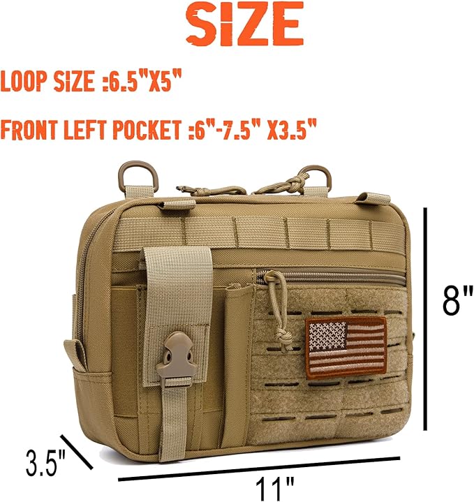 Molle Admin Pouch with Laser Cutting Loop,Car EDC EMT Molle Pouches, Large Capacity Tactical Pouch, EDC Pouch Organizer Include US Flag
