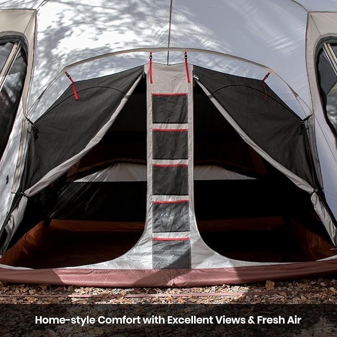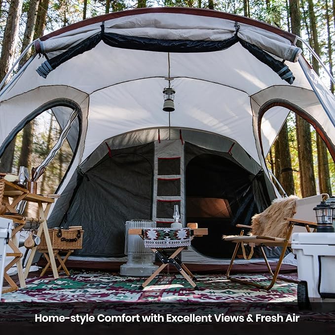 - BORN FOR GLAMPING - Our Maroom tent has a spacious vestibule that measures 130 x 126 inches and an impressive interior height of 7 feet. Moreover, it features a large awning that provides extra space to relax and a room divider that creates a private area. With these features, this tent is perfect for enjoying the outdoors!