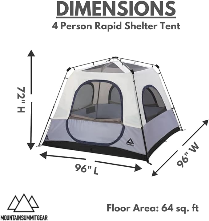 - Quick & Easy Setup: The rapid pop up tent frame system offers rapid set up and take down. Take the Rapid 4 Tent out of the convenient storage bag, unfold, and assemble in just minutes with the pop up mechanism.