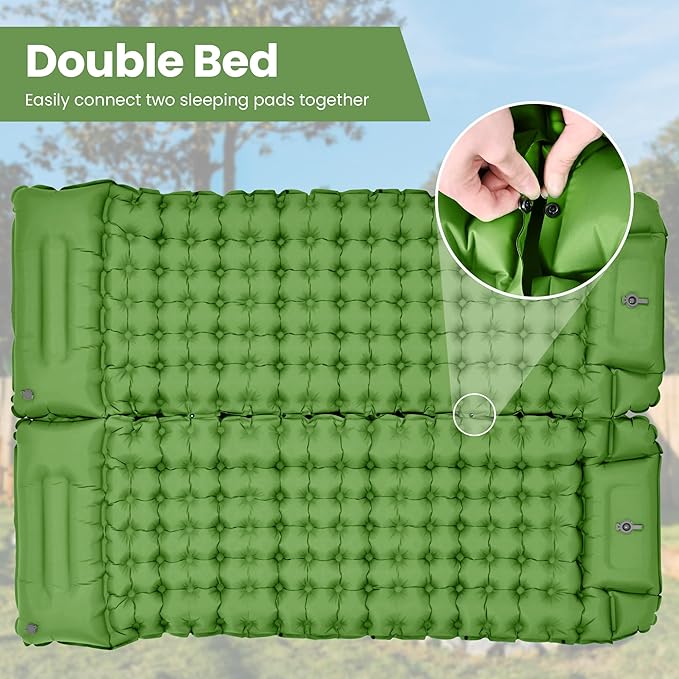 - Fast Inflatable Design- Foot Press to Inflate: Upgraded built in foot pump sleeping pad, NO MORE inflating by your mouth, or carry a pump, just simply stomp for only 30-60 seconds. With the upgraded version of the air release valve with no leaking film, never worry about air leaking! It only takes a second to deflate