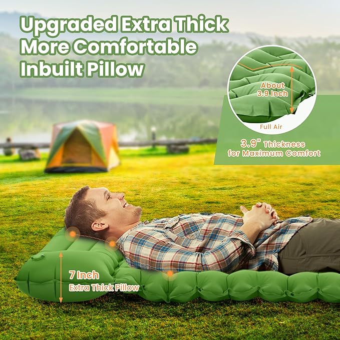ropoda Extra Thickness 3.9'' Inflatable Sleeping Pad for Camping with Pillow, Built-in Foot Pump, 77''*27'' Sleeping Mat with Carry Bag, Ultralight & Compact Camping Mattress for Hiking, Camping Pad