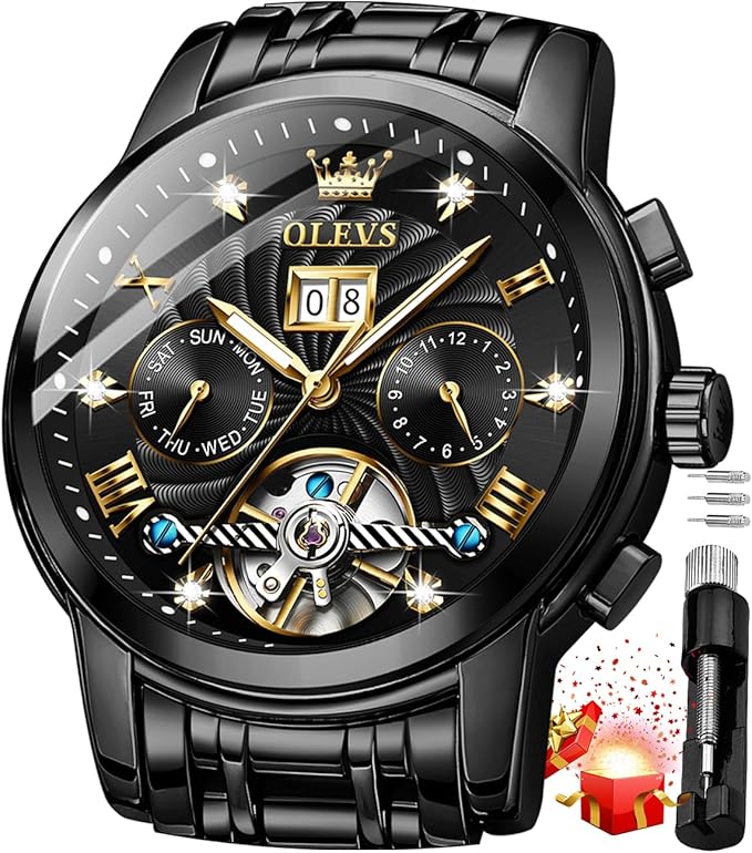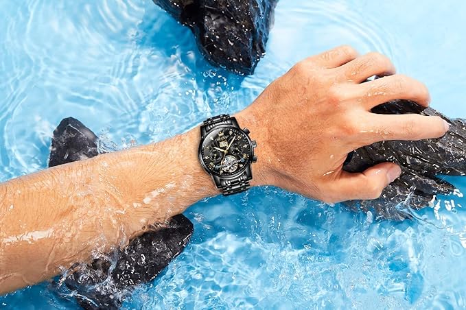- ⌚ Automatic watches for men: Original mechanical movement, support manual winding and self winding. No battery required. Signature tourbillon dial revealing intricate gears. Suitable for daily wear in casual or business occasions.