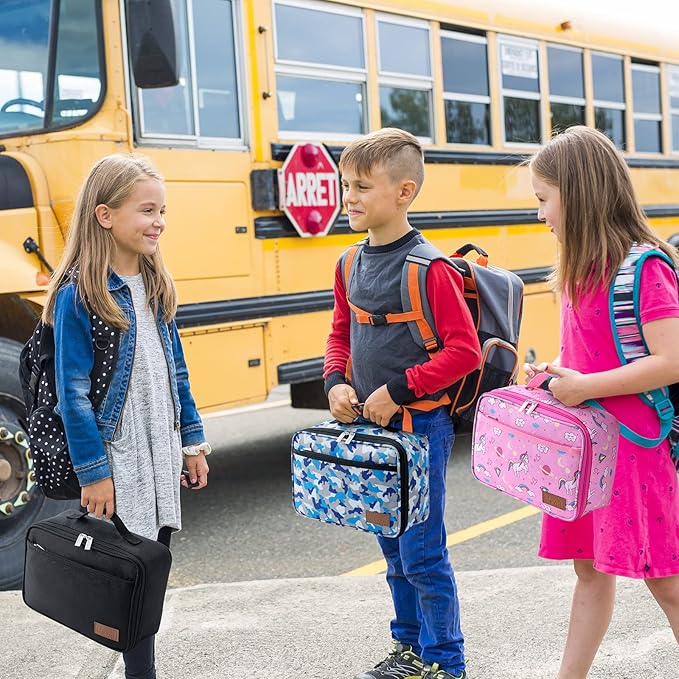 - Practical Design: Designed with high-quality smooth dual zippers that makes this BPA-free lunch box for kids easy to open. Features a soft dense stitching handle for easy carry. Suitable for children over 5 years old , many colors for you to choose from.