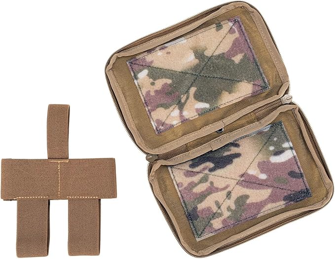 - The bottom of the pouch has two elastic loops for securing the tourniquet. A removable elastic tray with a convenient handle for securing small, loose medical items. The interior of the pouch has soft velcro loop panel on the front and back to allow you to secure small gear.