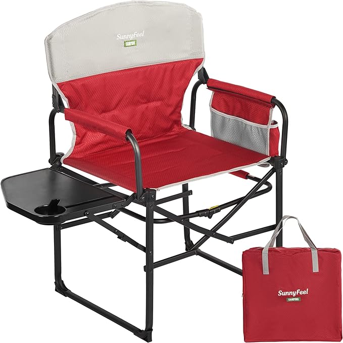 SUNNYFEEL Camping Directors Chair, Heavy Duty,Oversized Portable Folding Chair with Side Table, Pocket for Beach, Fishing,Trip,Picnic,Lawn,Concert Outdoor Foldable Camp Chairs