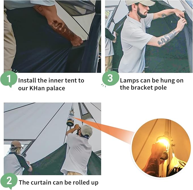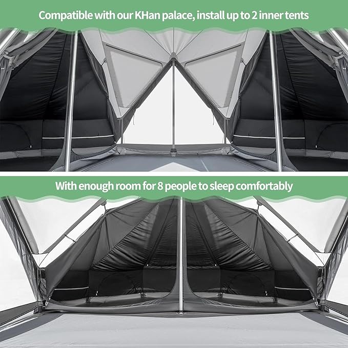 - ULTIMATE PRIVACY:Designed to block out light effectively, our inner tent creates the ideal sleep environment. Even the strongest light sources can't penetrate, ensuring complete privacy so you can rest with confidence. This inner tent is compatible with our Khan Palace tent and accommodates up to two inner tents.