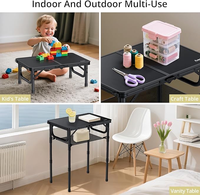 - Multifunction Table: This folding camping table is suitable for indoor and outdoor use. It can be used as camping table, barbecue table, picnic table, working dining card game and study for adults and children fishing etc