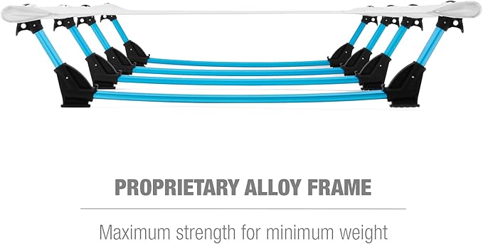• Holds up to 265 pounds with proprietary aluminum alloy legs and frame; cot cover and zippered carrying case made from 600-weave rip-stop polyester