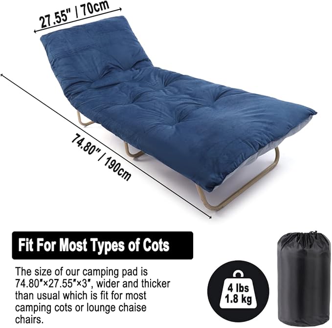 • Convenient and Easy to Carry: The sleeping camping cot pad can be easily installed or folded up into an included storage bag .