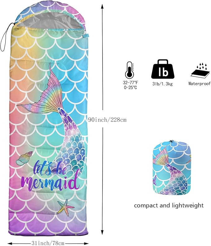 - Special Feature : Unique mermaid print design, waterproof, lightweight, compact, adjustable foot zipper
