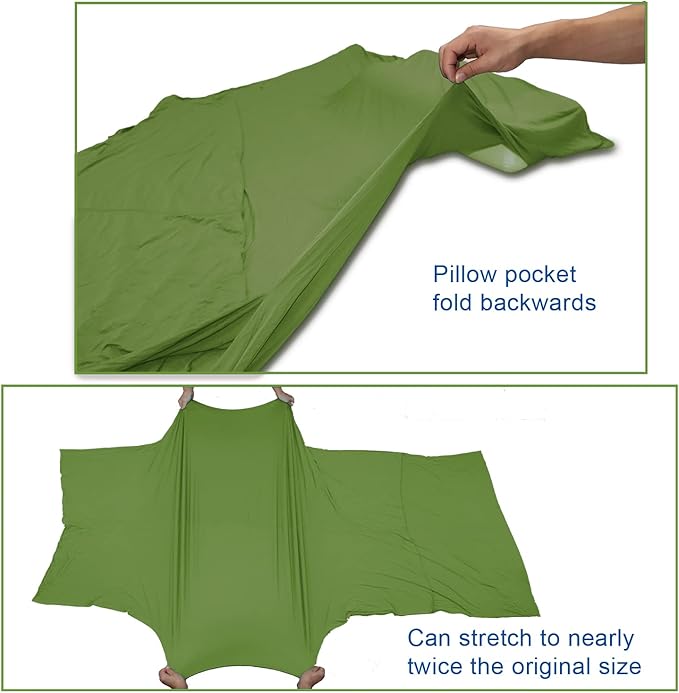 Travel Sheets for Hotel, Rayon Derived from Bamboo, Stretchy Sleep Sack for Adults, Warm Weather/Summer Sleeping Bag Liner for Camping and Travel, Rectangular with Pillow Pocket, Mummy, Cooling Sheets