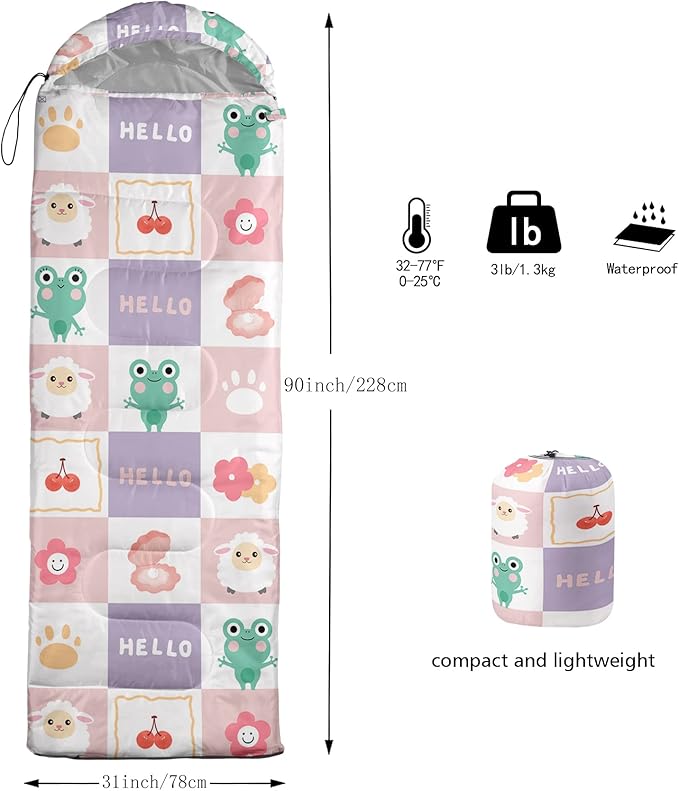 - FITS FOR 3 SEASONS: SIZE - 31 by 90 inches (W x D). Our sleeping bag can be used in 3 seasons with a design temperature of 32℉-77℉(0℃-25℃). These bags also have a weather resistant waterproof design to keep you warm and prevent you from any dampness.