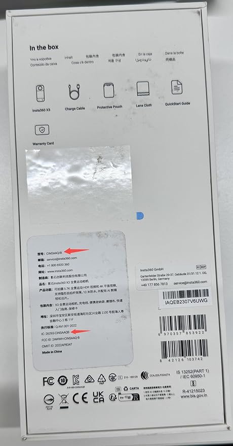 - In the box: 1x Insta360 X3, 1x 114cm Invisible Selfie Stick, 1x 64GB microSD Card, 1x Bullet Time Cord, 1x X3 Battery, 1x Lens Cap, 1x Fast Charge Hub.