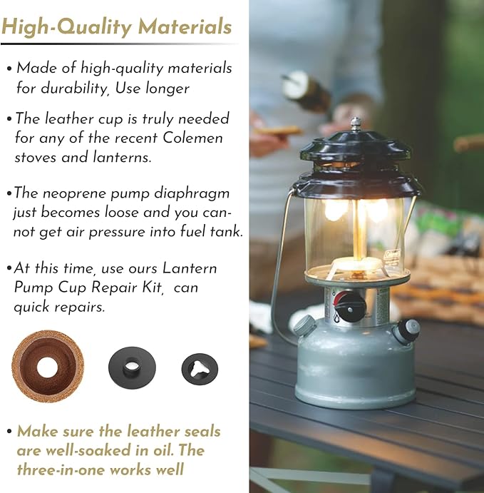 - Easy installation: Our camping stove leather pump cup kit, Easy to install in just a few minutes. compared to buying a new lantern or stove. Using this Coleman Leather Pump Cup replacement part of ours can save you time and money (Please watch the installation video)