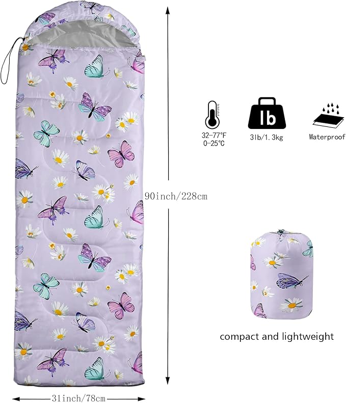 - FITS FOR 3 SEASONS: SIZE - 31 by 90 inches (W x D). Our sleeping bag can be used in 3 seasons with a design temperature of 32℉-77℉(0℃-25℃). These bags also have a weather resistant waterproof design to keep you warm and prevent you from any dampness.