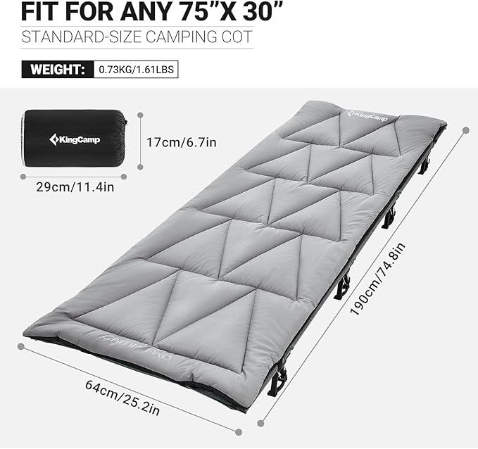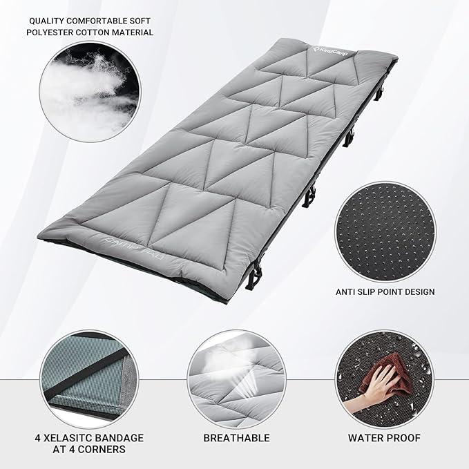 KingCamp Cot Pad Topper for Camping, Soft Warm Non-Slip Cot Mattress, Comfortable Lightweight Sleeping Mat for Outdoor & Indoor, Picnic, Hiking, Backpacking, Yoga