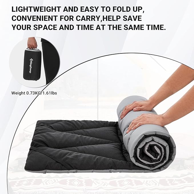 - LIGHTWEIGHT AND COMPACT - Weighing only 1.6 lbs, our camping pad is supremely portable, measuring 11.4×6.7×6.7 inches when compressed. You'll also receive a convenient carry bag that makes storage and transport a breeze.