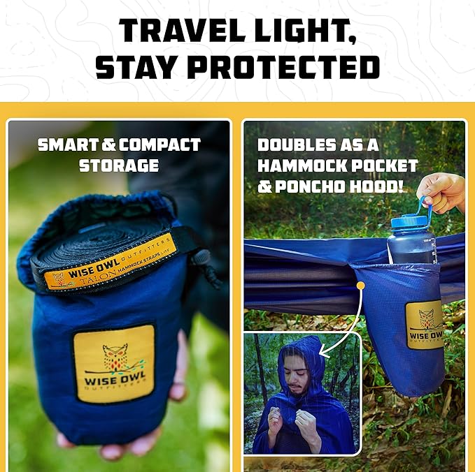 - Quick Setup, No Tools Required – Go from pack to hang in minutes. Attach carabiners and tree straps to get the weatherproof hammock for outside, or tie guy lines and stake it down for shelter mode. All gear included—no extra tools needed.