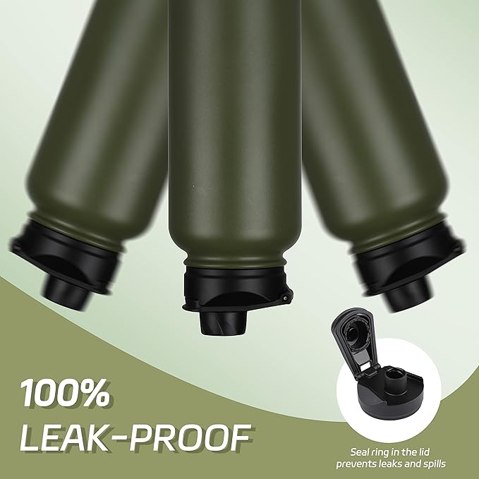 HASLE OUTFITTERS 32 oz Insulated Water Bottle Stainless Steel Double Walled Vacuum Sports Water Bottle with 2 Lids (Straw and Spout Lid) for Gym Camping Hiking(Army Green,1)