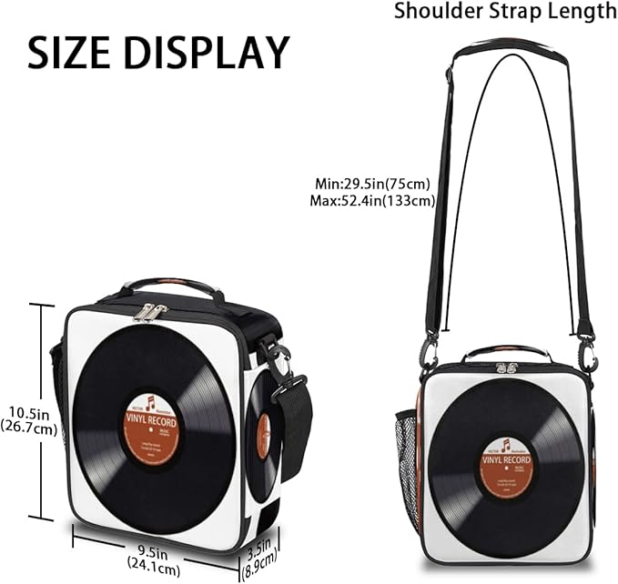 Pardick Music Record Black Kids Lunch Bag Retro Music Vinyl CD Insulated Lunch Box Mini Cooler Back to School Thermal Meal Tote Kit Bento Tote Bags Thermal Lunchbox for Boys Girls