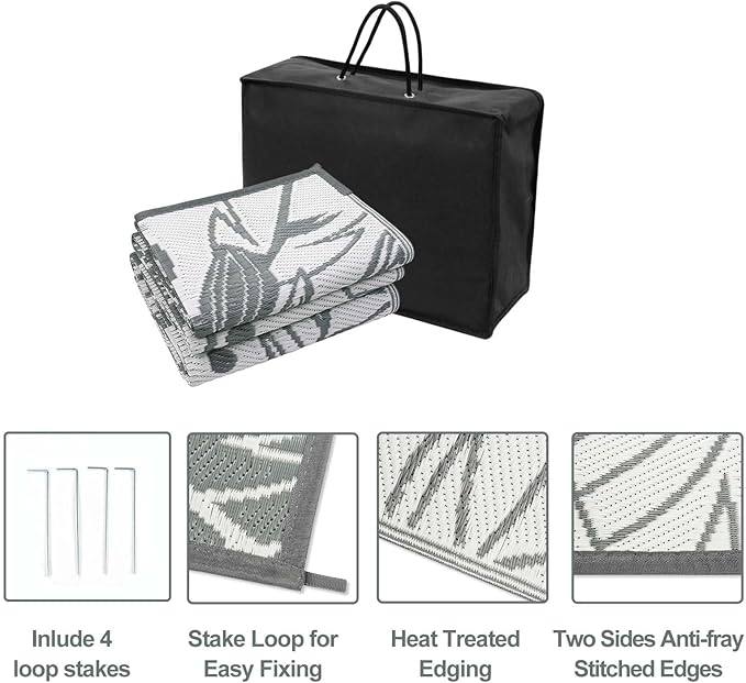 - 【Reversible Mat】Anidaroel waterproof outdoor carpet is designed with a double-sided pattern, either side of the mat will blend well with nature perfectly. The two shades of gray and white achieve the ultimate fusion. Tropical leaf pattern designs can create a comfy natural atmosphere for your indoor outdoor area.
