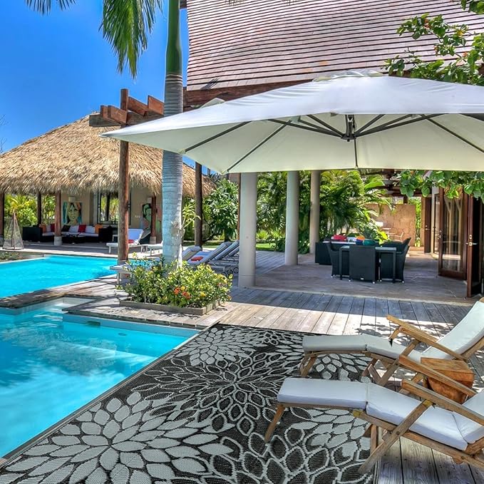 - UV Resiatant & Weatherproof: Waterproof outdoor carpet made from UV coated polypropylene to resist high temperature, fading and other sun damage, even long-lasting use in stormy/windy/snow weather will not cause any deformation or damage. Note: Colors show different in pictures due to lighting.